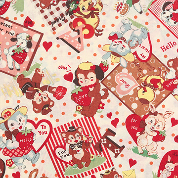 [유와] 마츠야마 아츠코 미니 미니 스트로베리 셔팅 프린트원단 - 핑크 (1/4yd) (D02)AT816618-C