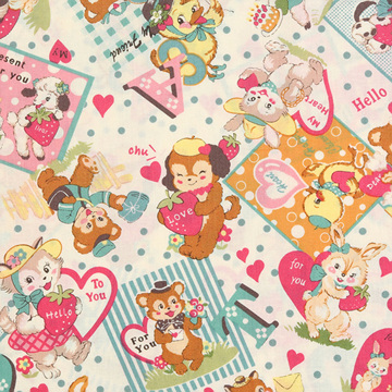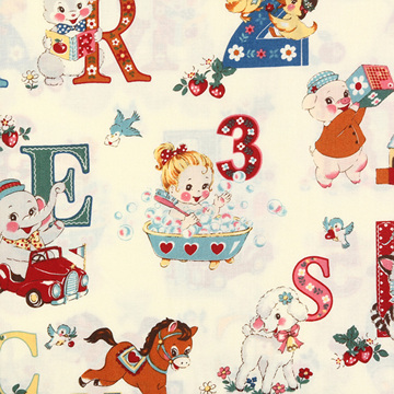 [유와] 마츠야마 아츠코 해피 베이비 셔팅 프린트원단 - 아이보리 (1/4yd) (D02)AT822366-E