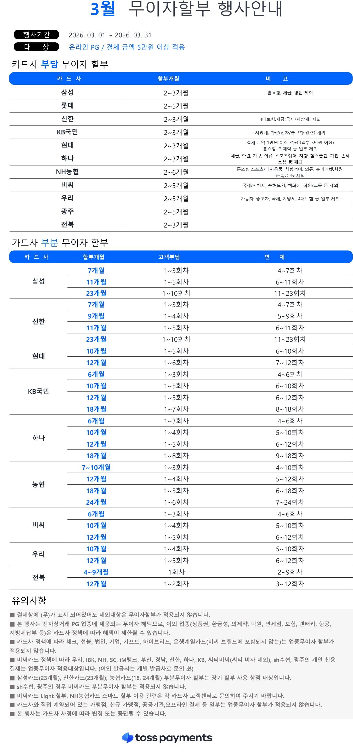 3월 카드 무이자 할부 안내