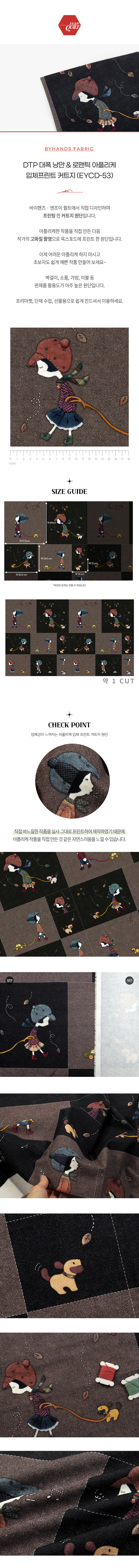 바이핸즈 엔조이퀼트에서 직접 디자인하여 프린팅 한 커트지 원단입니다! 패브릭포스터로 활용도 가능하며 아플리케가 어려운 초보자분들도 예쁘게