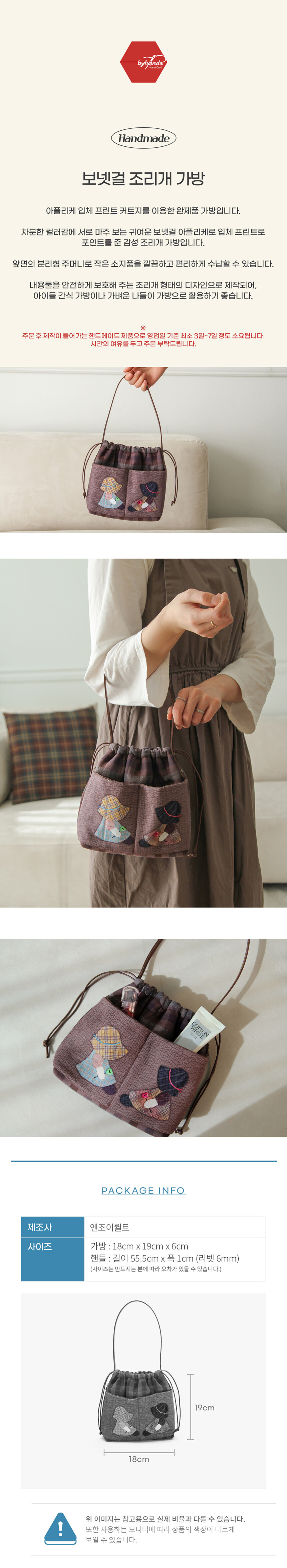 실제 아플리케를 한 완전 수작업 완제품이 아니라, 아플리케 바느질의 감성과 입체감을 프린트(DTP)로 구현한 원단을 사용해 완성한 제품입니다.