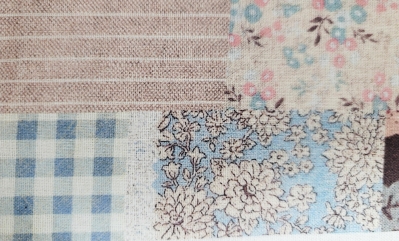 앤틱 플라워 & 체크 패치워크 하프린넨 커트지 140cm x 83cm