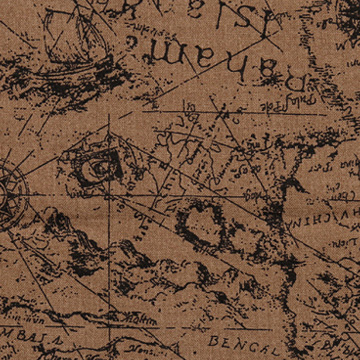 [코튼프린트] 트레져맵 프린트원단 - 브라운