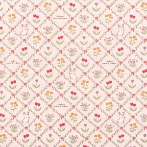 [코튼프린트] 대폭 튤립래빗 프린트원단 - 핑크