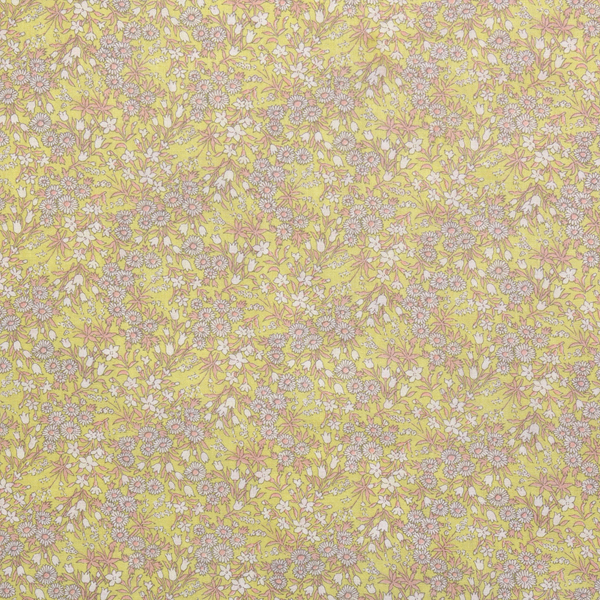 [세븐베리] 스프링 가든 미니 라인 플라워 론(아사) 프린트원단 - 옐로우