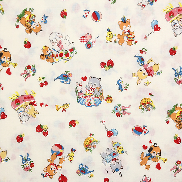 [유와] 마츠야마 아츠코 팬시 애니멀 셔팅 프린트원단 - 크림 (1/4yd) (D02)AT829716-A