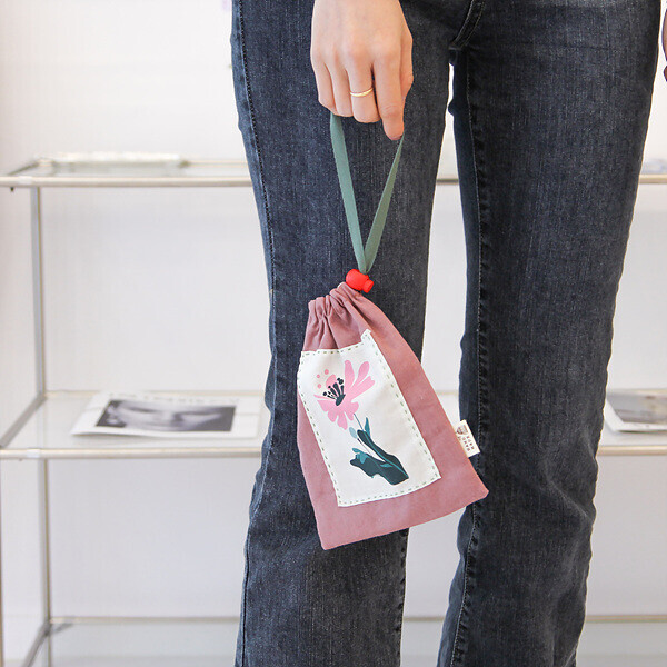 [바이핸즈] 퀼트패키지 소품 - 모던플라워 스트링 파우치 (핑크)