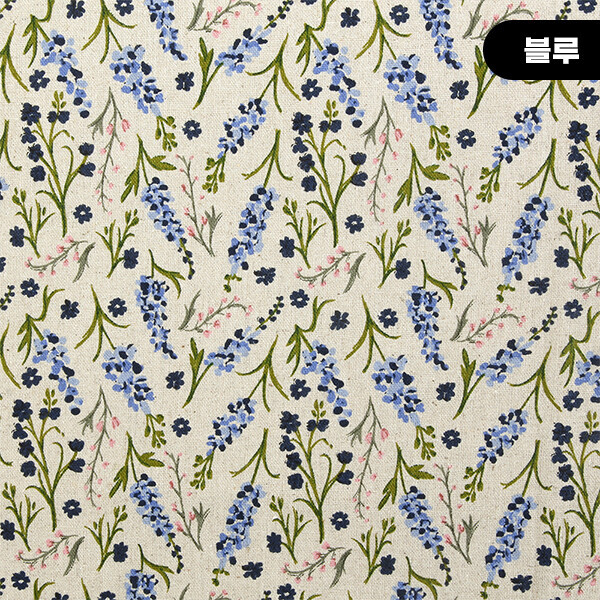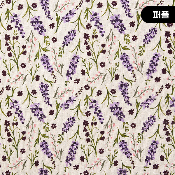 [국산린넨] 대폭 린넨천 빈티지 꽃무늬 프린트원단 - 뉴라벤더 ☆