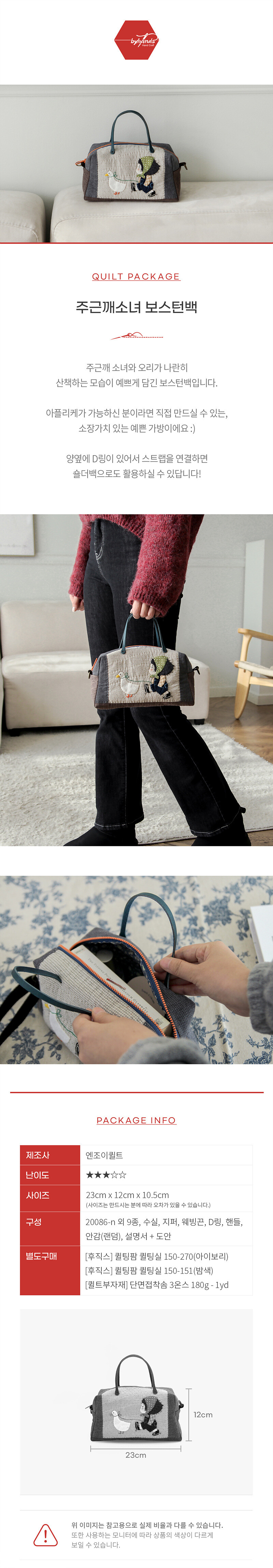 바이핸즈, 엔조이퀼트 퀼트 가방 DIY 패키지입니다. 본 상품은 완제품이 아니라 직접 만들어야 하는 퀼트 패키지이며, 완성 기준 사이즈는 26cm x 17cm x 10cm(약간 오차 가능)로 안내되어 있습니다. 구성품은 케이트 그린어웨이 커트지 외 8종, 수실, 레이스, 면끈, 핸들, 안감(랜덤), 설명서+도안 포함으로 제공됩니다. 아래 상세 이미지를 통해 완성 예시, 사이즈와 구성 안내를 확인하신 후 제작에 참고해 주세요.