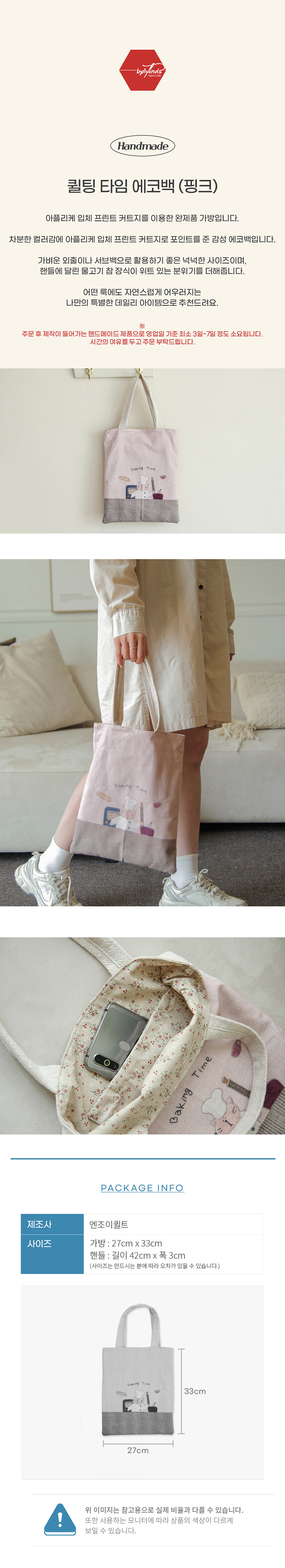 - 핸드 퀼트와 머신 퀼트를 혼용하여 제작한 상품으로, 퀼트 수작업 전문 디자이너가 제작하였습니다.